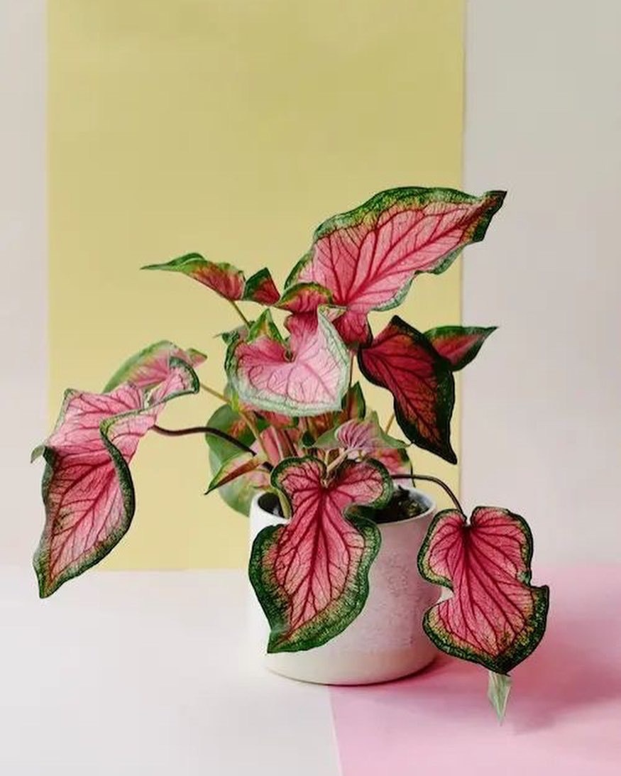 Каладиум славится своими крупными сердцевидными листьями, которые могут быть красными, зелеными, розовыми, белыми, а иногда и совмещать все эти оттенки! 🌹🌿 Такой калейдоскоп красок легко оживит даже самый скучный уголок в доме. К тому же форма листа напоминает нежное сердце 💖 – это идеальное дополнение для романтического настроения.