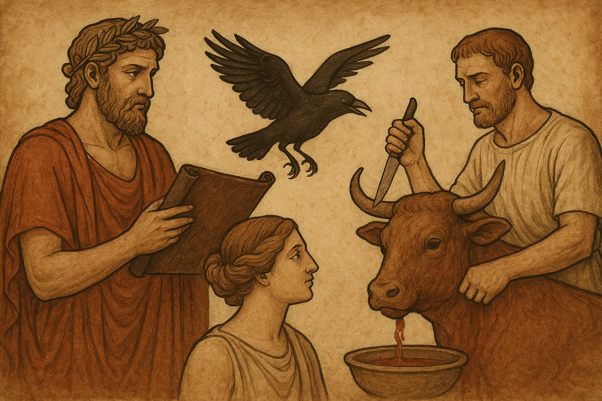Представьте себе могущественного римского полководца, готового повести в бой легионы. Его стратегия отточена, воины готовы умереть за республику. Но начало атаки зависит не от сигнала трубы, а от того, с каким аппетитом священные цыплята клюют зерно. Абсурд? Для нас - да. Для древнего римлянина - суровая реальность и единственный способ узнать волю богов. Римская цивилизация, подарившая нам право, архитектуру и инженерные чудеса, была насквозь пронизана суевериями. От императора до последнего раба, все жили в мире, где боги постоянно посылали знаки, а главной задачей человека было правильно их истолковать, чтобы сохранить "pax deorum" - мир с богами. Давайте заглянем в этот таинственный и порой жутковатый мир. Ни одно важное государственное дело не начиналось без консультации с авгурами - жрецами, которые толковали знамения по поведению птиц. Эту практику римляне переняли у таинственных этрусков. Гаруспики - жрецы-прорицатели - искали волю богов во внутренних органах жертвенных животн