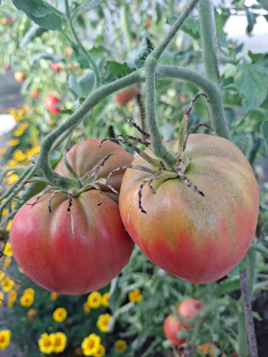 Август не только время для сбора плодов, но и период для выводов о целесообразности и желательности посадки определённых культур в следующем году. А потому важно объективно оценить то, что было посажено и выращено. Сегодня речь пойдёт о томатах. Посеяла несколько сортов. Одни выращивала в теплице, другие на улице. Что из этого получилось? Начну с сорта, который был хорошо знаком. Это - "Бычье сердце". Сладковатые мясистые розовые плоды любят все в нашей семье. По форме они, действительно, напоминают центральный орган сердечно-сосудистой системы. Ежегодно выращиваем. Теперь новые для меня сорта. Крупноплодные "Золотые купола". Жёлтые мясистые помидоры. В кисти обычно 3-4 тяжёлых плода. Красный с оранжевым отливом "Кот Бегемот". Биф томат с крупными плодами чуть приплюснутой формы. Тоже салатный вариант (две штуки - салат на всю семью готов). А теперь засолочные некрупные сорта помидоров. Один из них - "Итальянские спагетти". Длинные плоды с заострённым концом розово-красного цвета соб