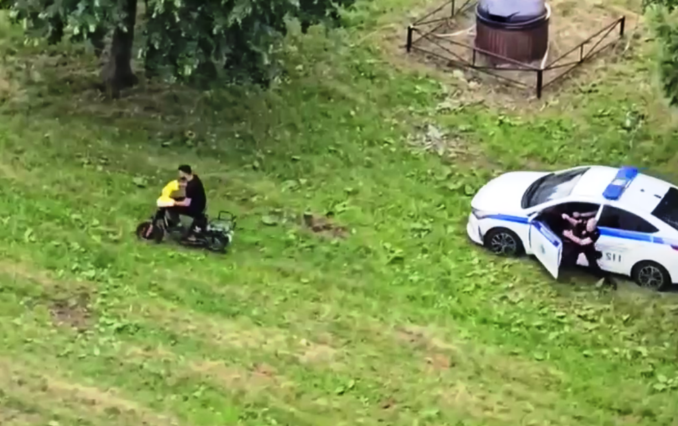 Приезжий курьер на «шахед-мопеде» попытался скрыться от полиции в петербургском сквере, но что-то пошло не по плану.