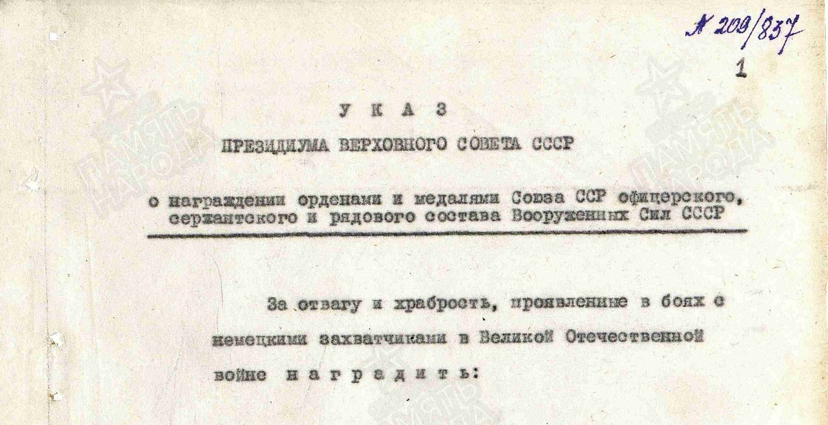 Лишь 30 мая 1951 года был издан Указ Президиума Верховного Совета СССР № 209/837 «О награждении орденами и медалями Союза ССР офицерского, сержантского и рядового состава Вооруженных Сил СССР».