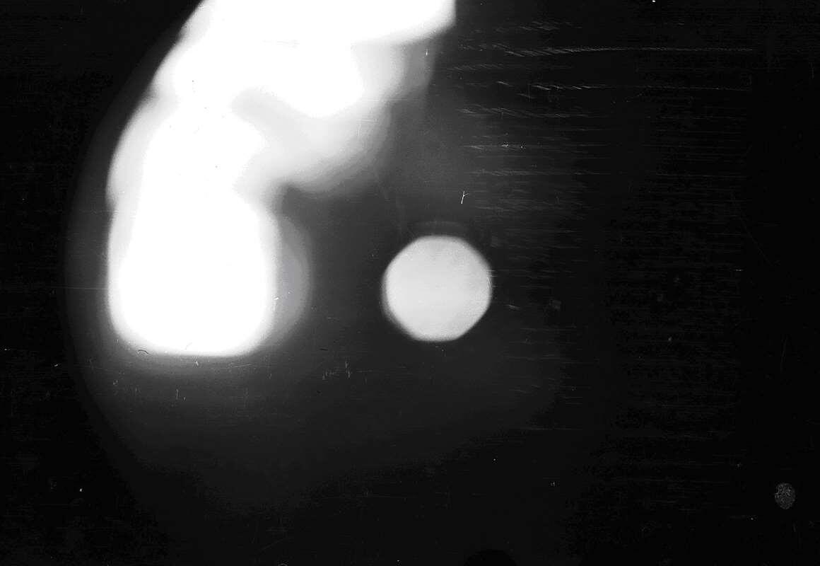 На чёрном фоне два белых пятна. Что это? Дефект проявления. Снимок случайно нажатой кнопки затвора, ничего не значащий снимок или...