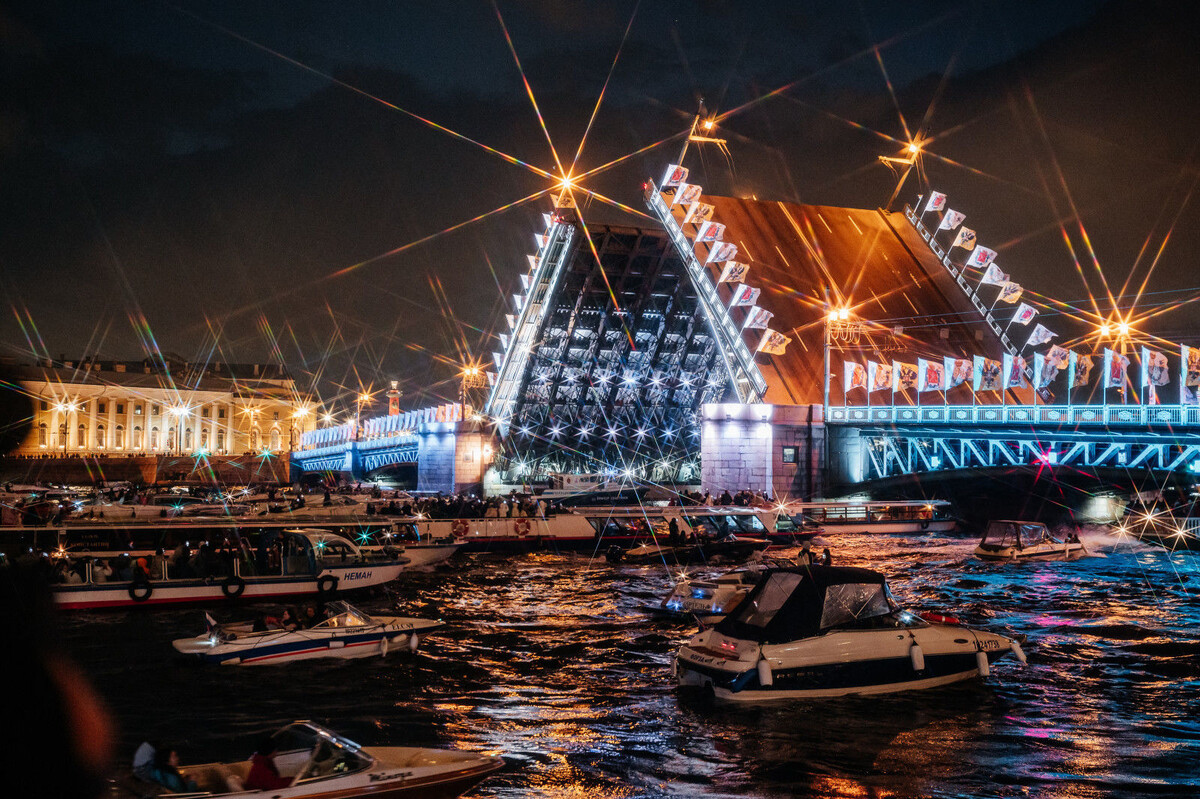 В ночь на 10 августа Дворцовый мост в Петербурге развели под музыку, посвященную спорту, в честь Дня физкультурника. Звуковое шоу «Поющие мосты» традиционно началось с «Гимна Великому городу» Рейнгольда Глиэра. После чего прозвучали Марш на тему песен из кинофильма «Первая перчатка» Василия Соловьева-Седого, «Герои спорта» Александры Пахмутовой и «Марш футболистов» Матвея Блантера. Шоу «Поющие мосты» организует издание «Петербургский дневник» при поддержке Комитета по печати и взаимодействию со СМИ с 2016 года. За 10 лет его посетили более 20 миллионов человек. Ранее над Невой прозвучал военный марш «Ленинград».