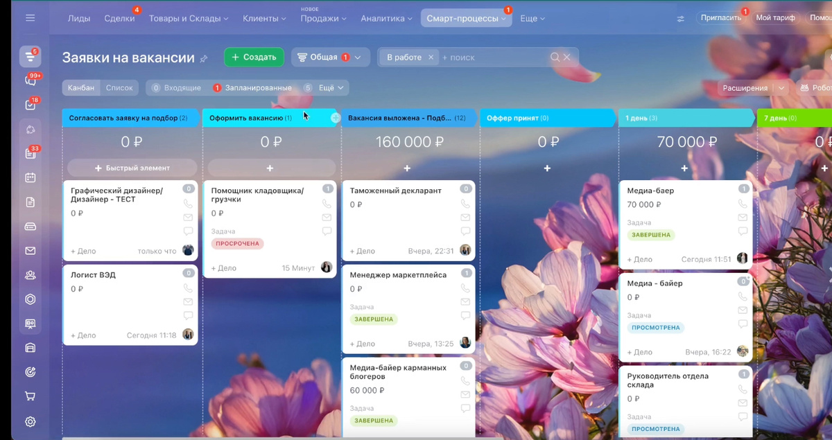 На связи PL Studio! В данной статье мы рассмотрим, как на практике реализован процесс найма сотрудников с полной интеграцией HeadHunter, воронками и smart-процессами внутри Битрикс24. Всё начинается со smart-процесса подачи заявки от руководителя на открытие вакансии. Так он выглядит: После согласования, вакансия публикуется на HeadHunter, который интегрирован с Битрикс24. Все отклики автоматически попадают во внутреннюю воронку найма. Отклики соискателей попадают в Битрикс24, где выстраивается отдельная воронка найма: Каждый шаг сопровождается задачами, напоминаниями, комментариями, а также автоматизацией — от рассылки писем до интеграции с календарями и мессенджерами. После успешного найма, smart-процесс переходит в режим адаптации, которая разбита на ключевые точки: Каждый этап сопровождается автоматическими переходами между стадиями и логированием информации в карточке сотрудника. Интеграция с HH позволяет: Для расширенных функций можно использовать дополнения из Маркета. Внутри B