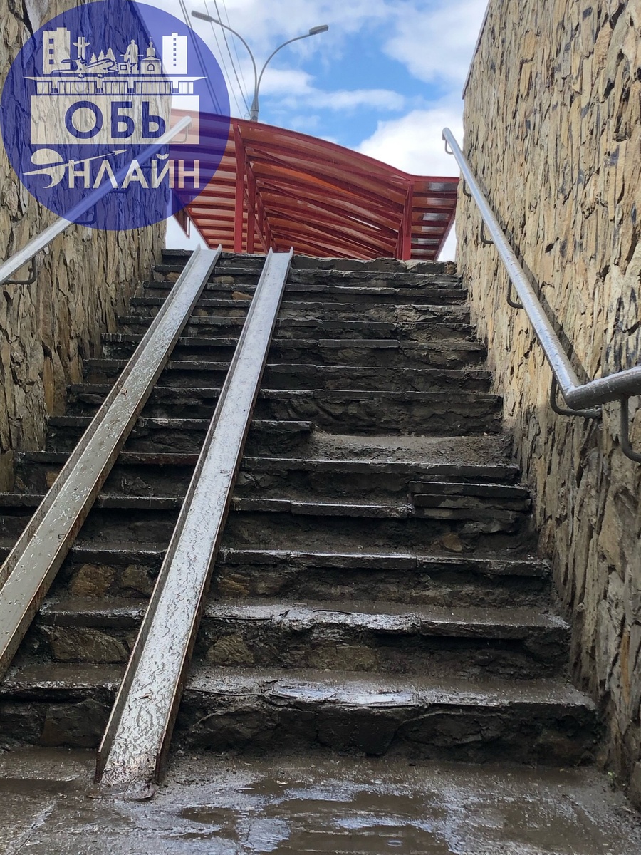 ↗ Администрация, а вы вообще контролируете город? Ступеньки на переходе ужасные, под трассой