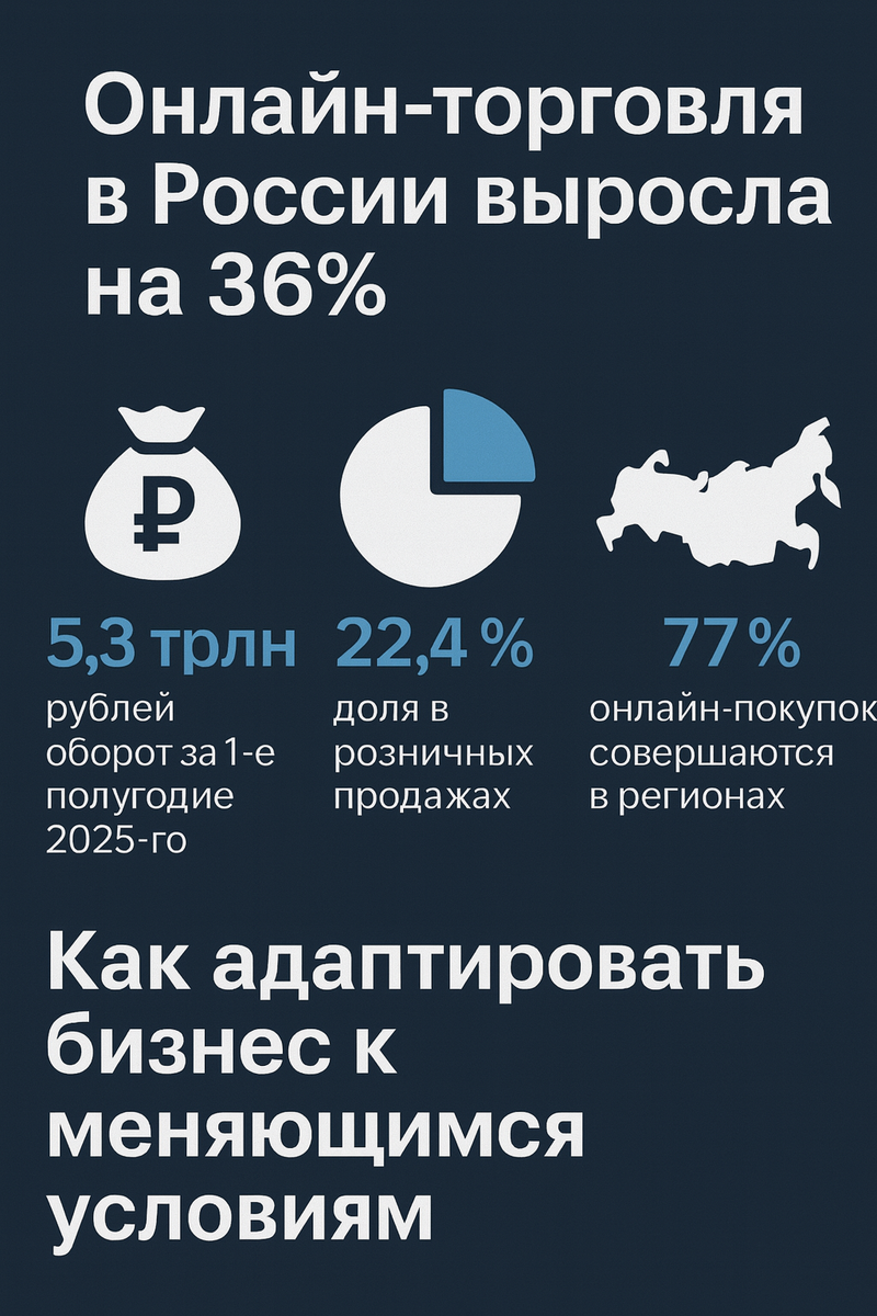 📊 Первое полугодие 2025-го стало рекордным для e-com в России — оборот интернет-торговли достиг 5,3 трлн руб., показав рост на 36% к прошлому году (данные АКИТ). И это не просто рост — это смена географии.