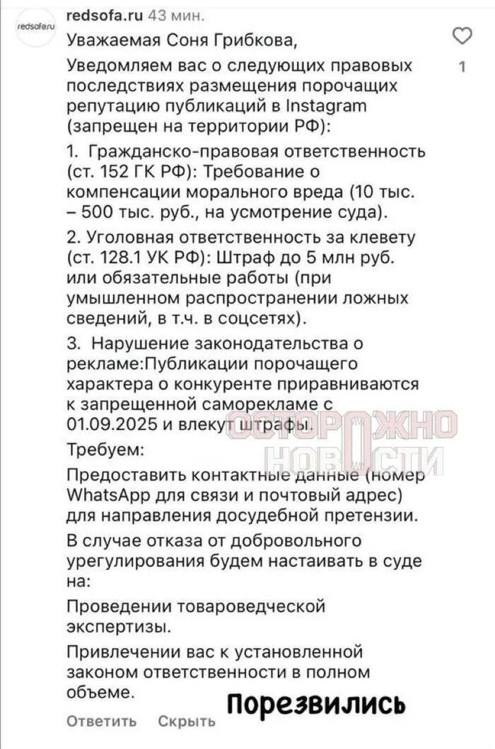 В декабре Никита и Софья приобрели на «Озоне» кровать за 22 тысячи рублей от фабрики Redsofa, а в июле обнаружили, что у неё прогнулось основание, из-за чего начал деформироваться матрас. Три дня назад кровать полностью просела, у постели также прогнулась спинка. После чего пара зашла на сайт производителя и выяснила, что фабрика предоставляет 18-месячную гарантию на свои товары. Супруги связались с компанией с намерением узнать, возможна ли замена каркаса или кровати. Но они сразу столкнулись с грубостью в свой адрес. Сотрудники Redsofa обвинили супругов в том, что кровать сломана из-за того, что на ней «порезвились» (кровать стояла в детской комнате). На их возмущение в чате ответили, что если пара начнёт «барагозить», то на Никиту и Софью подадут в суд