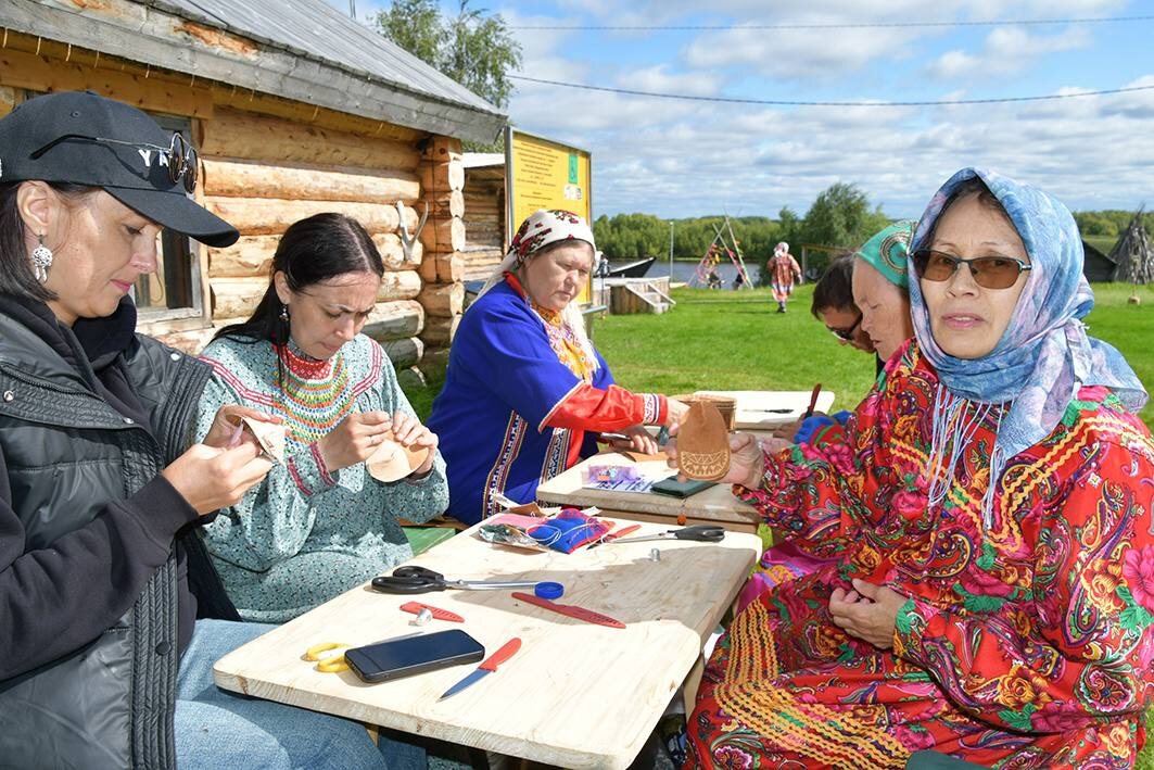 Для юных гостей были организованы игровые зоны, а для взрослых - мастер-классы по изготовлению орнаментов и изделий из бересты, которые провели приглашенные мастера из соседнего округа Мария Игишева и Евгения Вьюткина.
