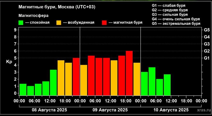 Она стала самой сильной с июня 2025 года. Магнитная буря на Земле продлилась более 30 часов и достигла в пике уровня G2.0, что стало самым сильным значением с аналогичного события от 13–14 июня этого года. Об этом сообщает Лаборатория солнечной астрономии ИКИ РАН. По состоянию на утро 10 августа геомагнитная обстановка полностью стабилизировалась. — Земля при этом продолжает находиться в зоне действия наблюдающихся на Солнце корональных дыр. Скорость солнечного ветра в настоящее время повышена примерно на 50% по сравнению с нормальными значениями. Наблюдаются скачки температуры и индукции межпланетного магнитного поля. В этой связи сохраняются риски геомагнитных возмущений, которые будут присутствовать до середины будущей недели, — прогнозируют ученые. В ближайшие 2-3 суток повтора сильных магнитных бурь не ожидается. Далее ситуация будет зависеть от вспышечной активности Солнца, которая продолжает находиться на высоком уровне. Читайте полную версию статьи на сайте MySlo.ru:
