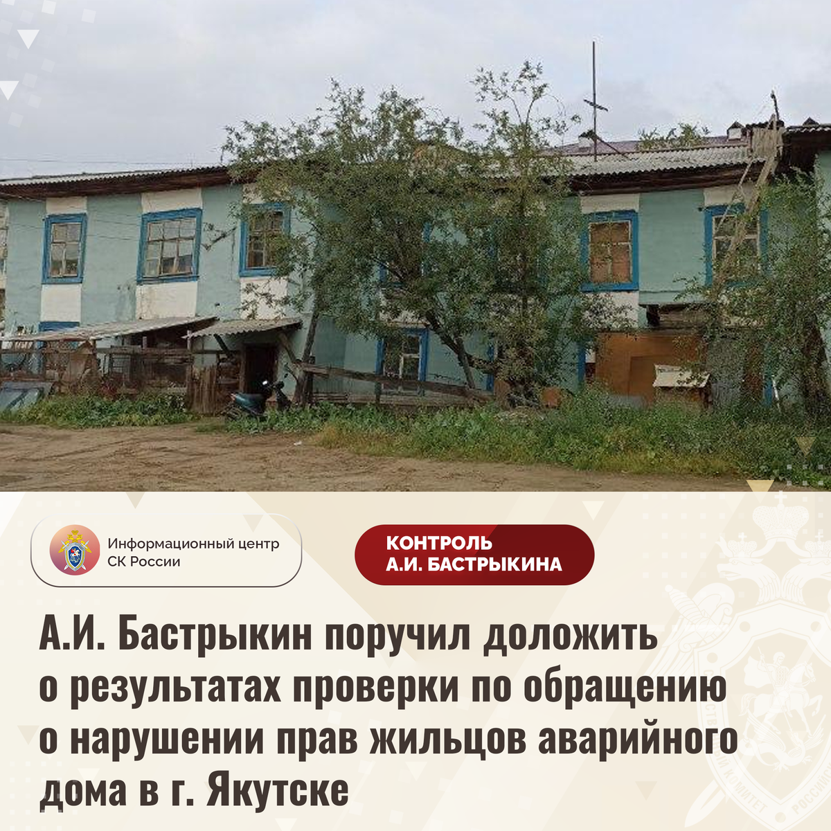 А.И. Бастрыкин поручил доложить о результатах проверки по обращению о нарушении прав жильцов аварийного дома в г. Якутске В комментариях в аккаунте Информационного центра СК России «ВКонтакте» обратился житель города Якутска по вопросу длительного нерасселения жильцов многоквартирного дома по улице Халтурина. В 2014 году здание, 1957 года постройки, признано аварийным в связи с высоким физическим износом конструкций, однако в дальнейшем решение отменено. Лишь после многочисленных обращений граждан в уполномоченные органы в 2017 году строению повторно присвоен статус аварийного, при этом оно не было включено ни в одну из программ по расселению. Несмотря на то, что в прошлом году суд обязал предоставить гражданам благоустроенное жилье в течение полугода, до настоящего времени решение не исполнено, в связи с чем они продолжают проживать в небезопасных условиях. Указанная ситуация освещалась в СМИ. В СУ СК России по Республике Саха (Якутии) по доводам, изложенным в комментарии, организова
