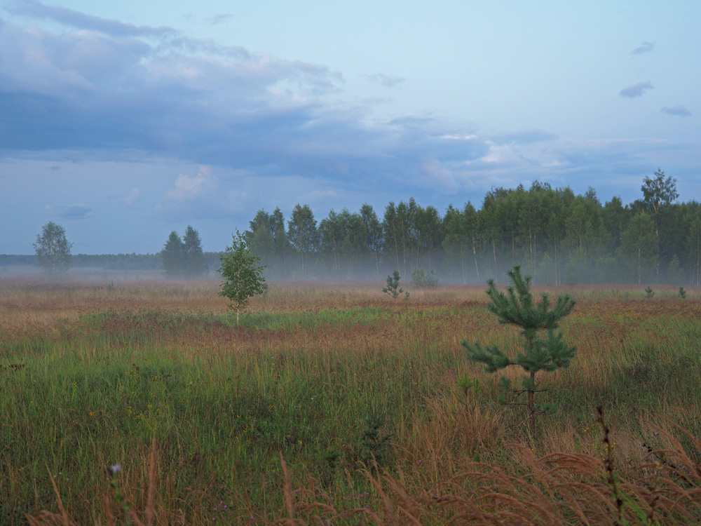 Насупило очередное полнолуние. При подходящей погоде стараюсь такое астрономическое событие не пропускать. Это отличный повод провести вечер не сидя дома на диване, а на природе, любуясь вечерними сумерками. Вечер первый. Для наблюдения за луной опять отправился в Дунилово. Ничего не могу с собой поделать - люблю я это место. Днем прошел дождь, что вечером дало небольшой туман. До восхода луны оставалось немного времени, поэтому заехал на мост через Тезу, чтобы запечатлеть вечернюю панораму с дуниловскими храмами. По мосту прогуливалась местная молодежь. Затем переместился на свой наблюдательный пост рядом с любимой липой. Приготовился к съемке, установил штатив и в качестве разминки сделал несколько кадров Благовещенского собора и Успенского монастыря. Я знал, что луна выйдет с этой стороны, но в каком именно месте можно было узнать, только увидев ее. Покончив со съемкой, вдруг увидел правее Благовещенского собора между деревьев желто-оранжевый диск луны. Сумерки стремительно таяли,