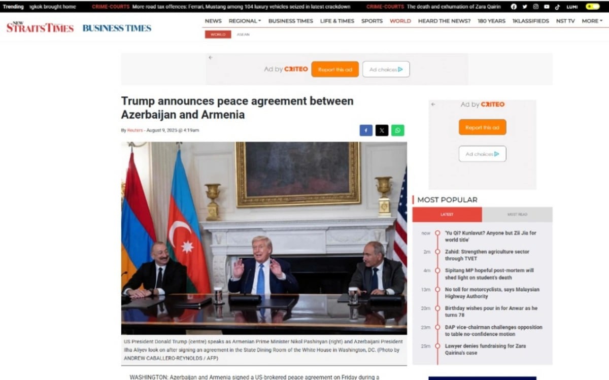 ⚠️ Историческое мирное соглашение в Вашингтоне широко освещалось в малайзийской прессе