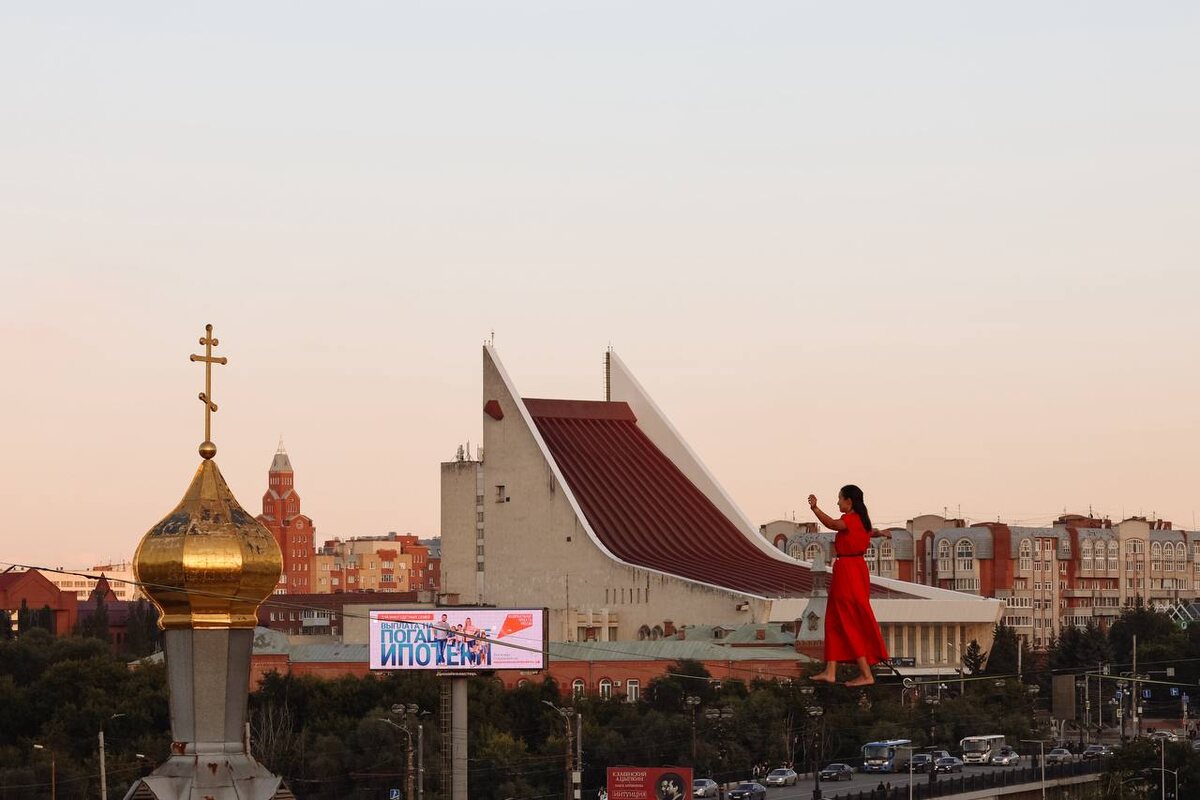 В Омске на «Штормфесте» канатоходцы прошли над Любинским проспектом