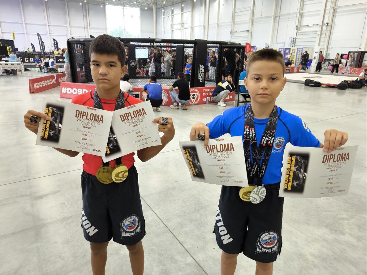 Ученики 7 «Т» класса Миша и Сава завоевали высшие награды на турнире по панкратиону «Битва за Москву»!
