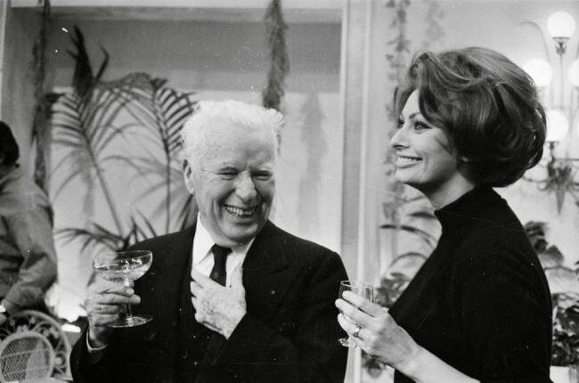 Чарли Чаплин и Софи Лорен на вечеринке по случаю дня рождения первого, 1966 г.