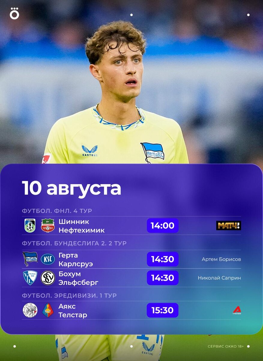 Много футбола в это воскресенье! Топовые товарищеские матчи, вторая Бундеслига, РПЛ и ФНЛ, первые туры в чемпионатах Нидерландов и Португалии ⚽️ И немного велоспорта. Сегодня пройдёт последний этап Арктической гонки Норвегии. Смотри в Okko! 😀