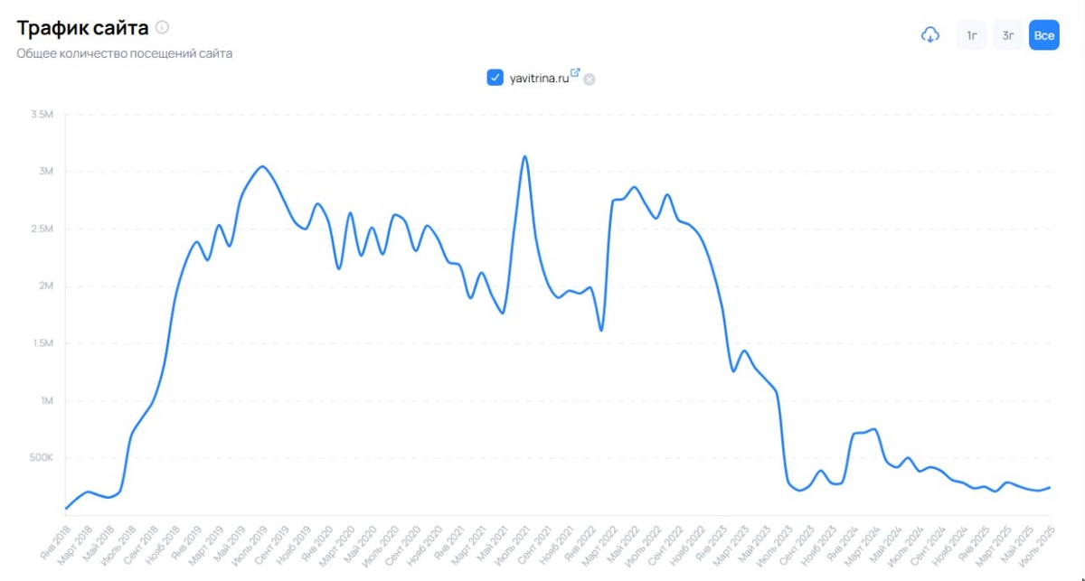 По поводу сайтов- товарных партнерок. В чате (спасибо) поделились трафиком на крупнеший проект yavitrina - может быть помните такой...