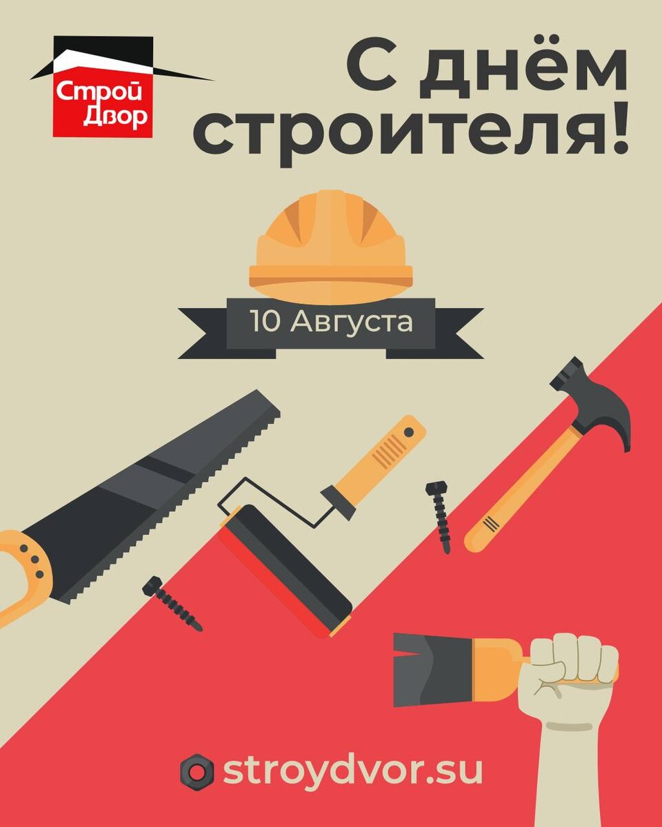С Днем строителя! 🎉 Сегодня мы поздравляем тех, кто создает будущее своими руками. Спасибо вам за ваш труд, терпение и мастерство! Пусть каждый ваш проект будет успешным, а дома — крепкими и уютными. Мы рады быть частью вашего пути! С уважением, команда СтройДвор. 💪🔨