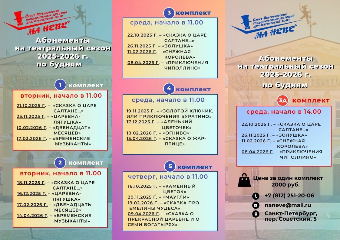 Внимание! Дорогие зрители! Сейчас самое время вспомнить о своем культурном обогащении в течение нового театрального сезона и выбрать для себя самый подходящий абонемент! В этот раз помимо уже классических, театр выпустил специальный комплект № 3А , в котором начало спектакля будет в 14.00 tnaneve.ru/abonementy/ #театр_на_неве #театрнаневе #детскийтеатрспб #сказкананеве #золотойсентябрь