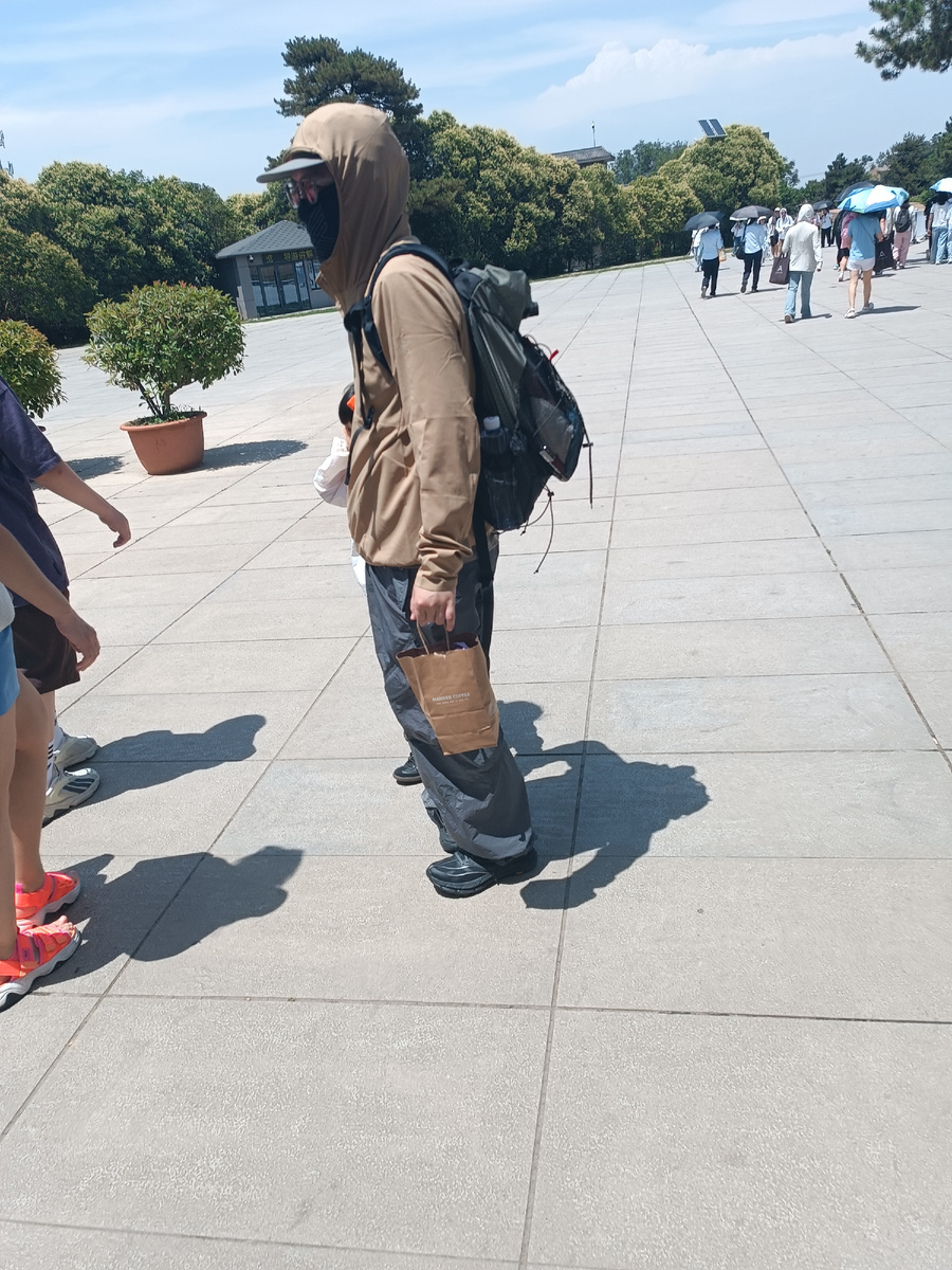 Напомню, что на улице +42, а голые ноги рядом — это моих друзей по поездке. Я, конечно, тоже ценю аристократическую бледность, но не больше жизни, а в таком виде легко получить тепловой удар. И второй вопрос у меня: а где они демонстрируют свою идеальную белую кожу, если всё время так одеты?