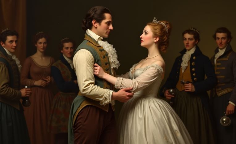 В гостиной уже звучали первые аккорды. Анна спустилась по лестнице, чувствуя, как шелест бального платья подчёркивает каждое её движение. Гости оборачивались, провожая её восхищёнными взглядами. В такие моменты Анна знала себе цену.