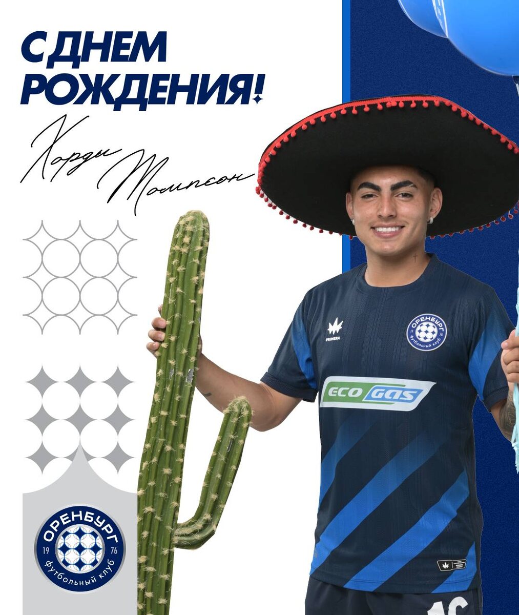 Хорди Томпсону - 21!🥳 Желаем Хорди оставаться таким же улыбчивым, радовать нас своей игрой и всегда держать себя в форме🍔 С Днем Рождения, Хорди! #ФКОренбург #ХордиТомпсон