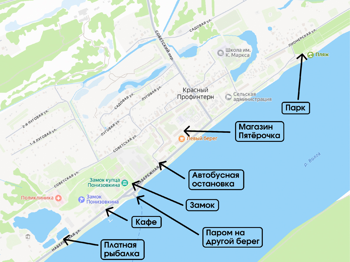 После посещения замка можно прогуляться Красному Профинтерну и посмотреть, как живут местные жители. Перед замком Понизовкиных расположена закрытая Платная рыбалка. Красивая ухоженная территория, беседки для отдыха, несколько прудов для ловли рыбы.