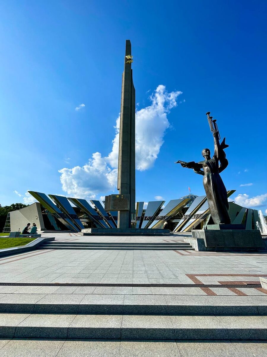Пешком по парку от Минск Арена дошли до монумента Город Герой Минск. Маша нам конечно спасибо не сказала за это, рухнула на лавочку и просила бросить ее тут😂 Ничего, отдохнула и прошла потом ещё столько же 😁 Ей подружка ещё в Москве сдала адрес милого магазинчика с сувенирами, поэтому Маша держалась на стремлении туда попасть любой ценой))