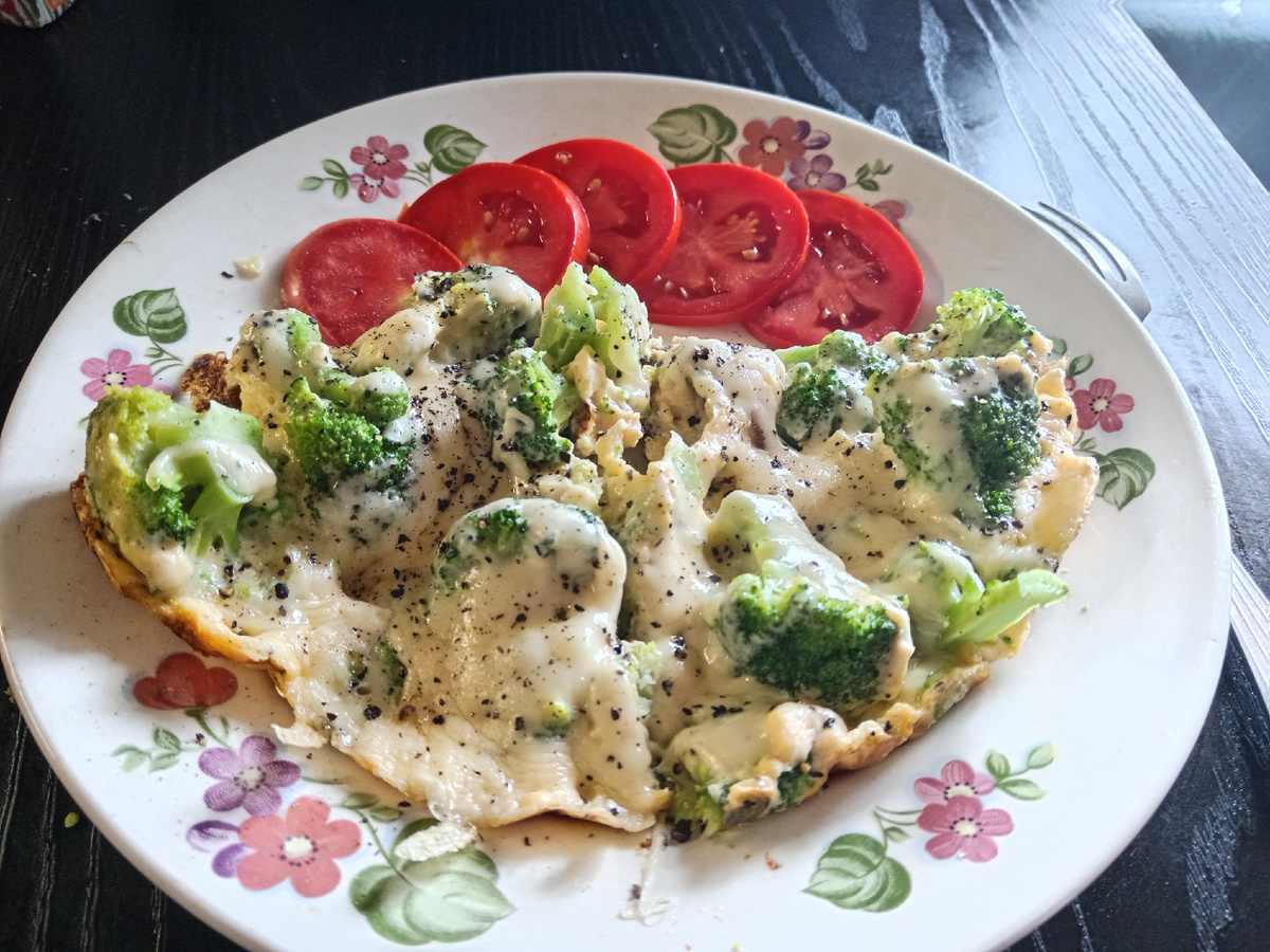 Привет-привет всем любителям вкусной и полезной еды! Сегодня поговорим о настоящей супергероине нашего рациона – капусте брокколи. Она не только красива внешне (посмотрите на эти зелёные цветочки!), но ещё и очень полезна! Я выращиваю у себя на даче кустиков по десять. Бесподобный вкус у свежесрезанной! Можно и замораживать, хотя качество получается у готового блюда гораздо скромнее. 1. Витамины: В одной порции содержится почти суточная норма витамина C! А ещё витамины A, K и группы B. 2. Антиоксиданты: Защищают наши клетки от повреждений и помогают выглядеть молодо. 3. Клетчатка: Помогает пищеварению работать как часы. 4. Низкая калорийность: Отлично подходит тем, кто следит за фигурой или хочет похудеть! Но что делать, если вы думаете: «Брокколи? Ну её, невкусная она какая-то...» Спокойствие, мои дорогие друзья! Я приготовила для вас 3 простых и вкусных рецепта, чтобы раз и навсегда влюбиться в эту капусточку! Самое простое блюдо, чтобы полюбить брокколи-это омлет. Омлет