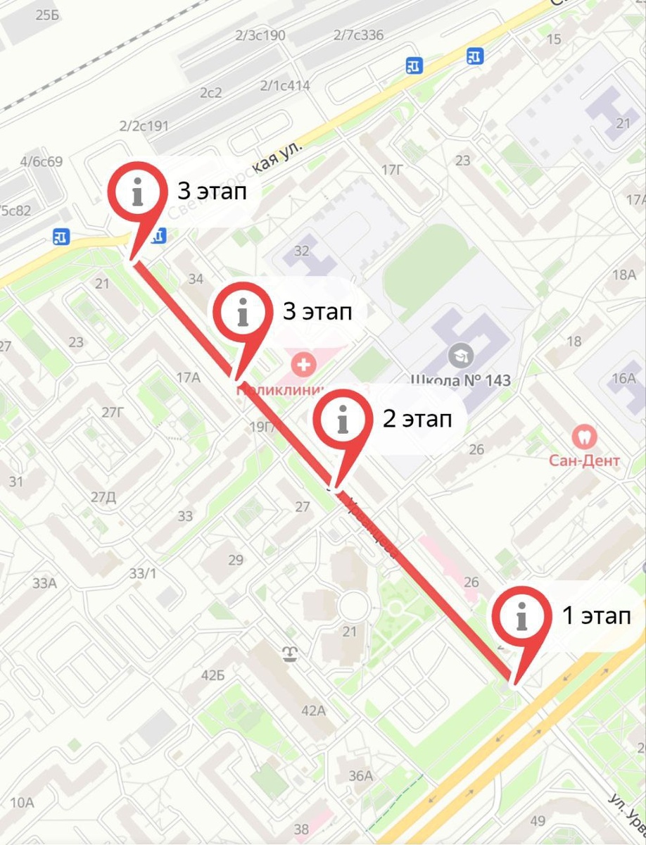 11 августа ограничение движения передвинется ближе к улице Светлогорской, на участок, отмеченный, как 3-й этап на карте.