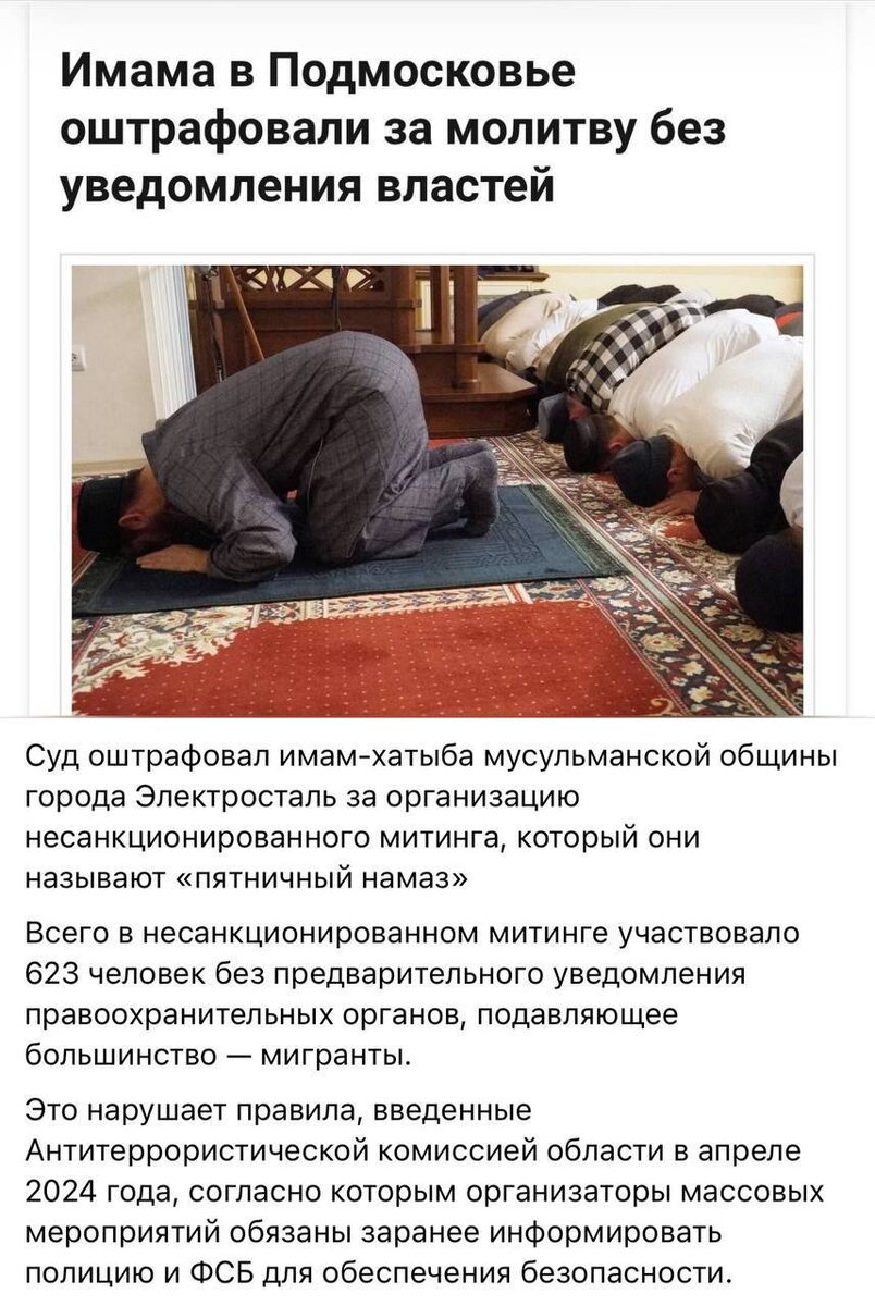 Имама в Подмосковье оштрафовали за молитву без уведомления властей 👉 ЧП Дагестан. Подписаться