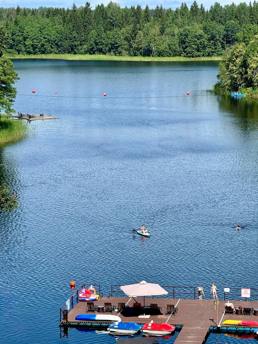 Пляж. Дорога к озеру такая, что её не страшась можно пройти босиком — всё больше по палубной доске. С утра трава, мокрая и прохладная от росы, щекочет пальцы. Песок у воды, напротив, уже тёплый, приятно греет пятки. Заняв место на лежаке под зонтом в красную полоску, я наблюдал за солнечным зайчиком скачущим по водной ряби. Кто-то невидимый с шумом набрался духу и плюхнулся в озеро, что вызвало у меня невольную улыбку. Такие они, простые, но столь отрадные утешения загородного лета. - Тёплая ли вода в озере? Гости купаются и фырчат от удовольствия. Я попробовал, для меня вода прохладная, я предпочитаю не меньше +26С. Озеро питается родниками, прогревается только верхний его слой. Но в жаркий летний день, это как спасение 📍Отель-усадьба «Времена года», озеро Наговье, Торопец, Тверская область 🇷🇺 #МояРоссия
