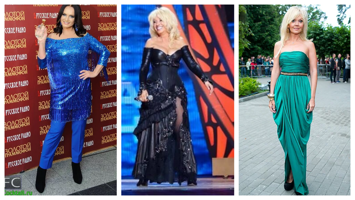 Гардеробы Софии Ротару, Валерии и Ирины Аллегровой объединяет сценическая логика. Она строится на блеске, жёстком силуэте, контрастах и крупном декоре.