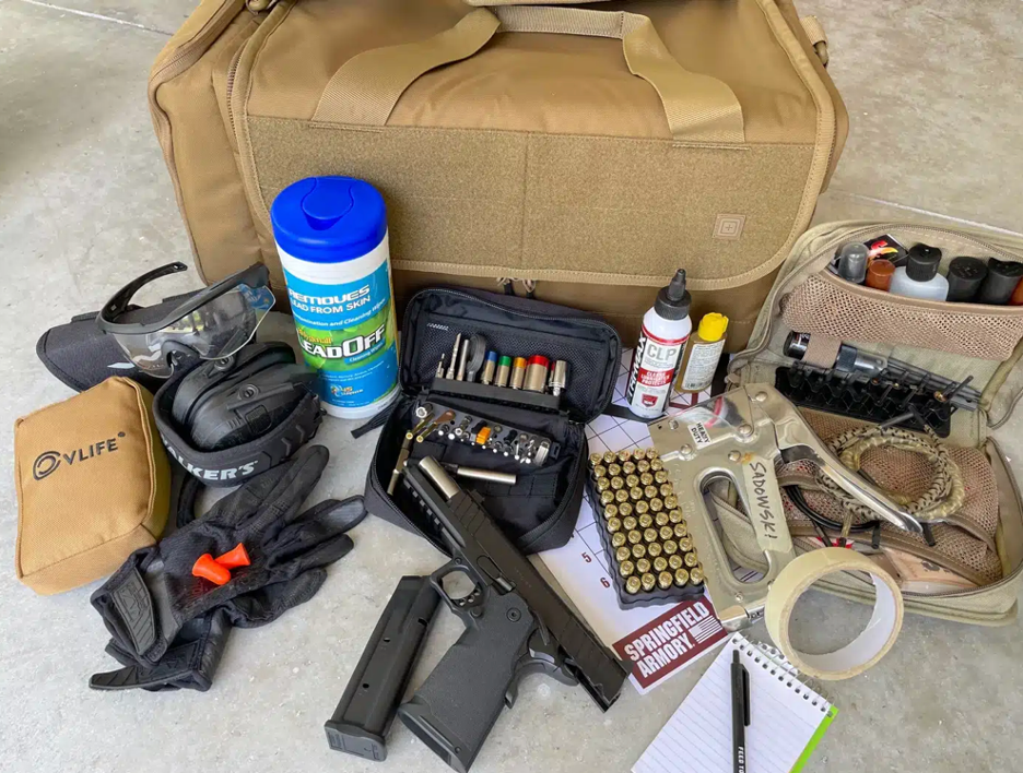 В правильно оборудованной сумке должны лежать инструменты и принадлежности, необходимые для продуктивного дня на стрельбище. На фото Springfield Armory 1911 DS Prodigy