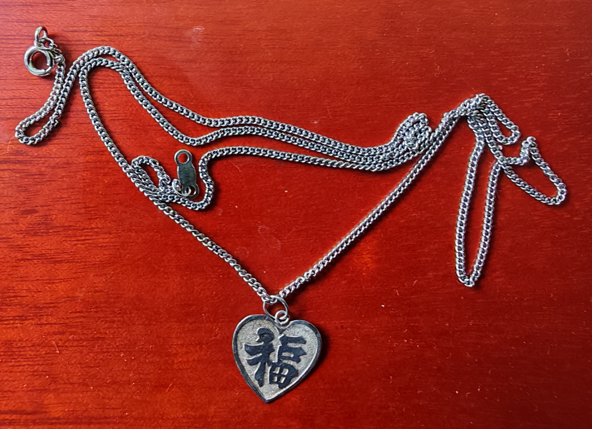 Когда я описывала свое детство, то рассказывала о том, что мой отец при разводе с мамой перечислил в списке имущества, которое он хотел поделить, мои детские украшения. В той статье было фото моего детского жемчуга. На днях перебирала украшения и наткнулась на свою детскую серебряную подвесочку. Которую отец тоже внёс в тот самый список. Почистила ее и купила вчера для неё цепочку из серебра. Со времени развода родителей я ее не носила. Сейчас решила надеть. Покупали ведь мне ее родители с любовью. Мне тогда было 4 года. Мы жили во Вьетнаме. Были тогда счастливы. В тот период у меня было счастливое детство. Счастье. На подвестке знак Фу. Знак счастья. Это не просто «счастье». Иероглиф включает в себя понятие везения, процветания, благословения. Это символ мечты о хорошей жизни: с достатком, гармонией, здоровьем и радостью. Родители тогда купили несколько украшений с этим знаком. Не только подвески, но и перстни. Один мамин, другой папин. Почему счастье не может быть вечным? Ещё