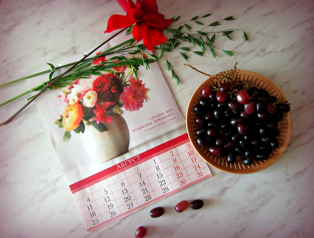 Подборка получилась не очень большая, поскольку часть интересностей этого периода я пустила на другие публикации (прогулки, рукоделие), а часть ещё в запасе для будущих тематических подборок. Что же останется здесь? Смотрите! Конечно же, календарь! Небо... Очень яркий закат был, будто пламя на небе пылало. Но недолго, минуту или две. Я успела поймать момент)) Дороги августа... Травы августа. Любимая речка. Она здесь так красиво разделяется, образуя перекат. Переход через Белую (фото с воды). Оказалось глубже, чем предполагали, так что дозу адреналина получили)) И удовольствие тоже! Это всё были снимки с одной прогулки, про которую не рассказывала. Просто выбрала для фотомарафона несколько моментов. Ласточки на проводах. Будто нотный стан, только линеек маловато)) А теперь несколько моментов с прогулки, о которой рассказывала недавно. Как и обещала - "портреты" цветов. Ястреб в полёте. Сила жизни... Пейзаж с ромашкой)) Первый сбор тыквочек. Посадили новый сорт "Ольга". Описание на паке
