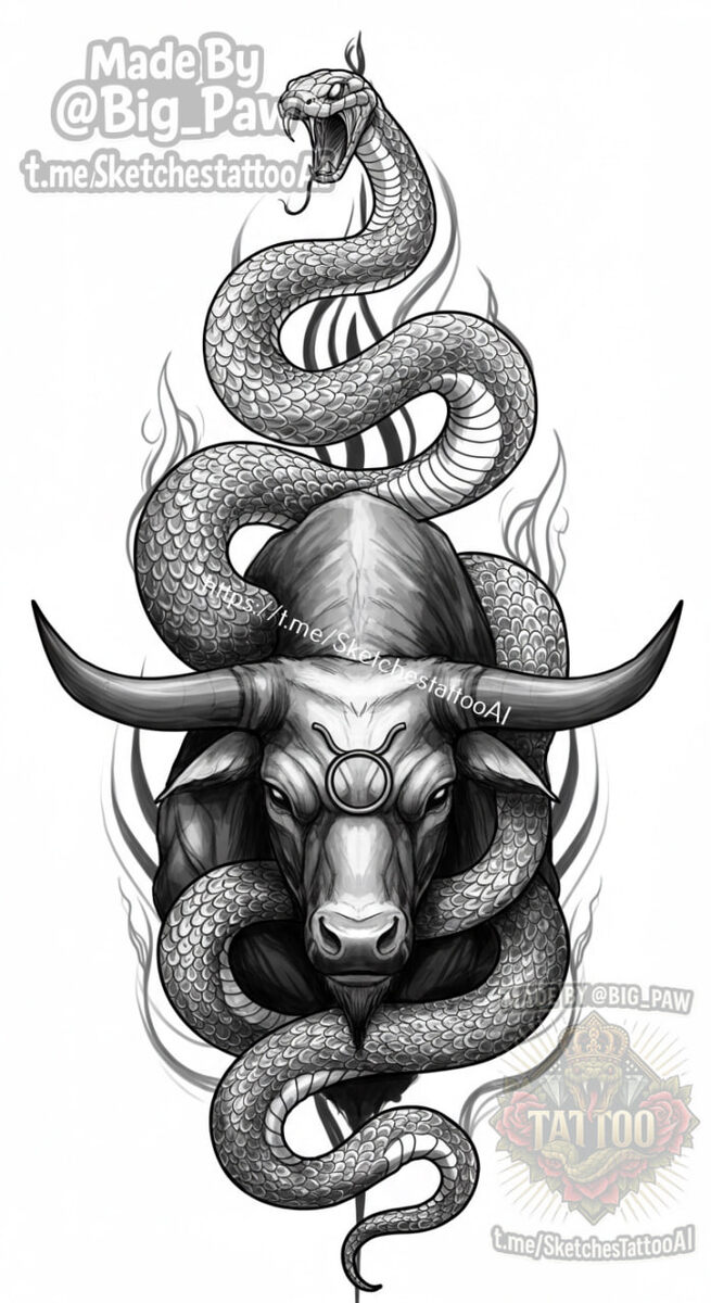 #2665 Подборка по запросу подписчика - эскиз, змея телец 🧠 SYNTX 💳 Донат 😎 НейроБро 😎 Эскизы без вотера 💀 Эскизы от нейросети #змея #телец #знакзодиака #эскиз #тату #татуировка