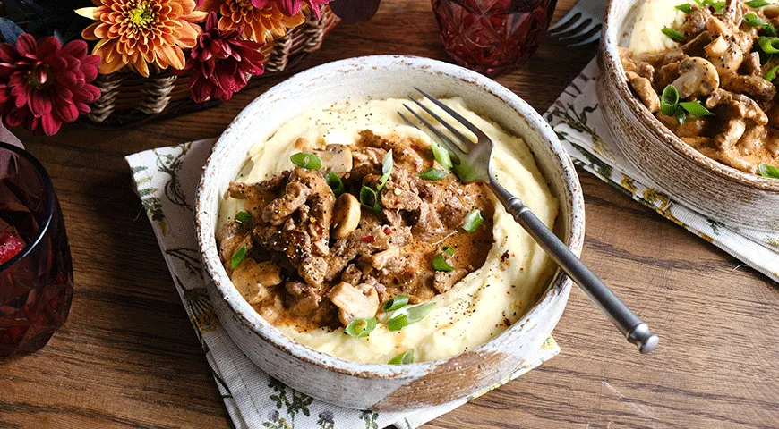 Нежные полоски говядины в густом сметанном соусе с луком — блюдо русской кухни, которое стало популярным во всём мире. Подаётся обычно с картофельным пюре, рисом или пастой. Ингредиенты (на 4 порции): Приготовление: Совет: для более насыщенного вкуса можно добавить немного белого вина или паприки при обжарке мяса.