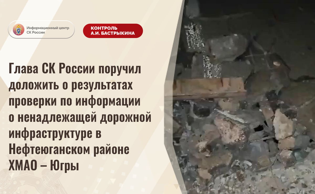 Глава СК России поручил доложить о результатах проверки по информации о ненадлежащей дорожной инфраструктуре в Нефтеюганском районе ХМАО
