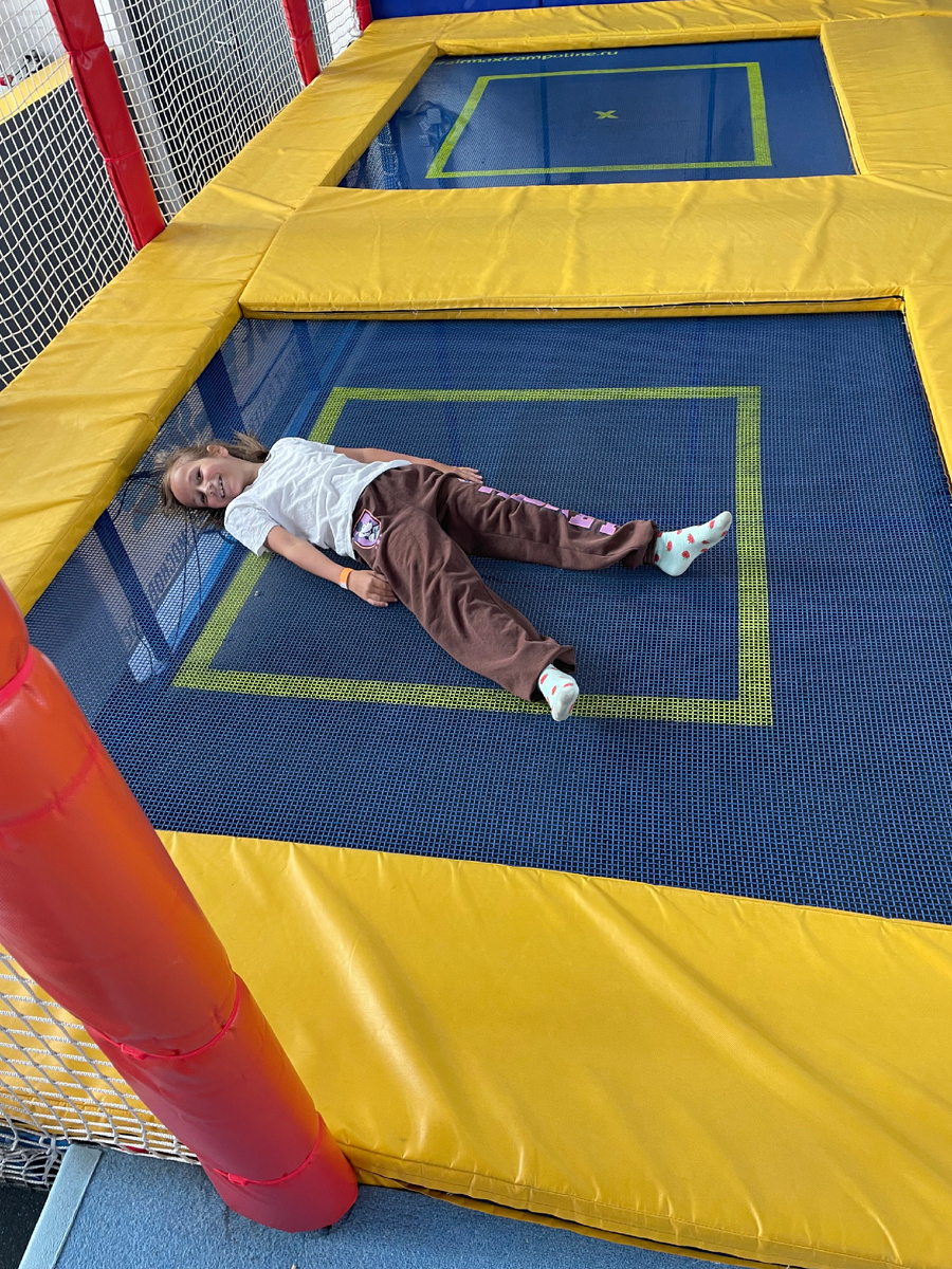 В первой половине дня мы сходили с младшей дочкой на батуты.
