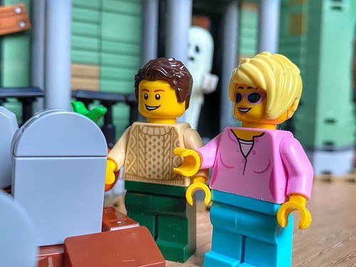 Заброшенное здание с привидениями от Sander Sloots 👻 Два минифигурки явно не ожидали встретить дружелюбного призрака в старом здании! Сцена с атмосферой, деталировка — всё на уровне. «Похоже, тут водятся привидения!» — готов поспорить, так и есть. Идеально для осенних вечеров с намеком на мистику. Источник: Flickr Lego Builders group