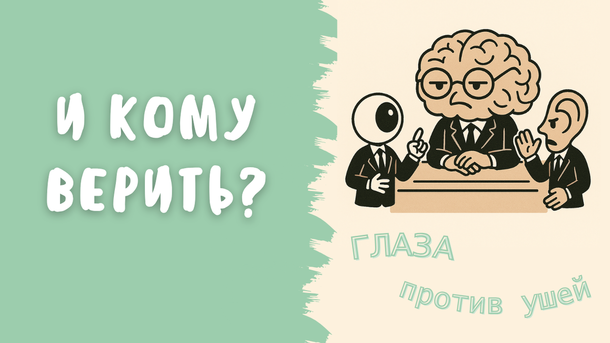А теперь давайте нажмем на паузу. Что сейчас произошло? Звук ведь был абсолютно реальным. Но ваш мозг, получив противоречивые данные, безоговорочно поверил не ушам, а глазам. Почему картинка «пустая комната» оказалась в миллион раз убедительнее вполне реального звука «происходит что-то неладное»?