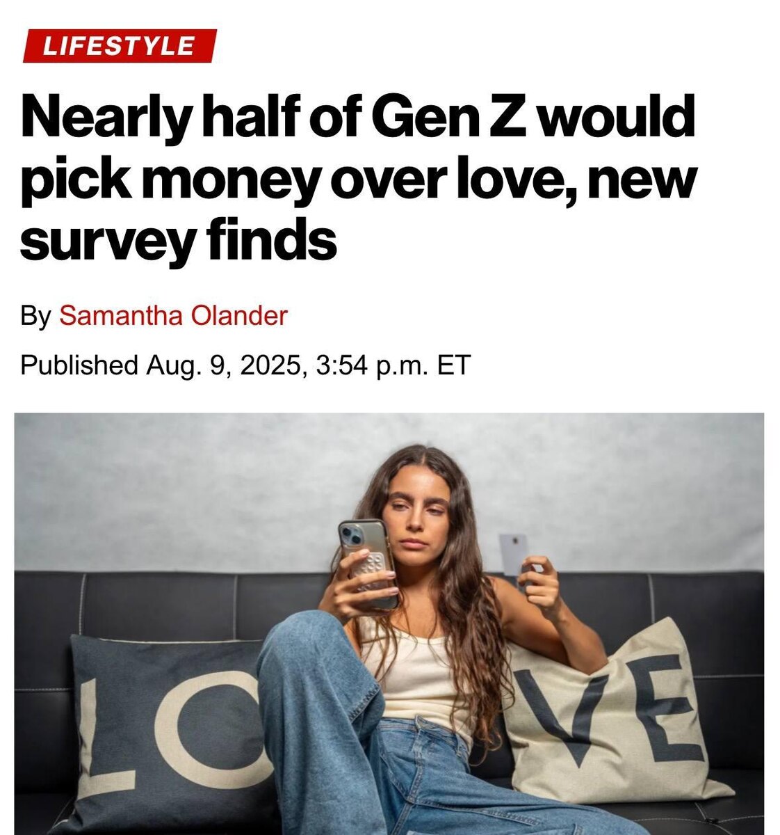 Зумеры ценят деньги больше, чем любовь, по данным New York Post