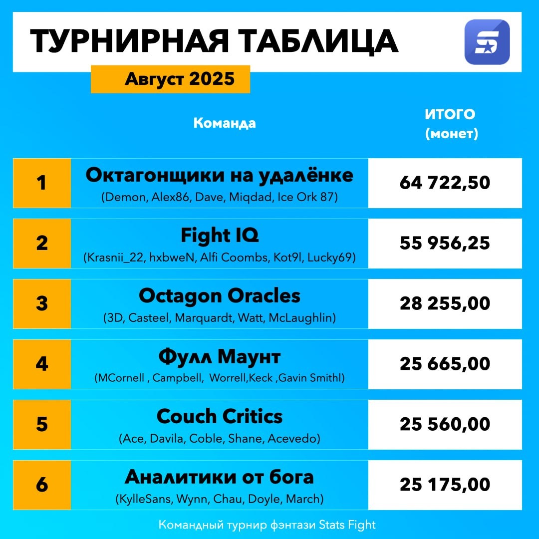 π Π’Π°Π±Π»ΠΈΡΠ° Π²ΡΡ ΠΎΠ΄Π½ΡΡ ΠΊΠΎΠΌΠ°Π½Π΄Π½ΠΎΠ³ΠΎ ΡΡΡΠ½ΠΈΡΠ° Stats Fight