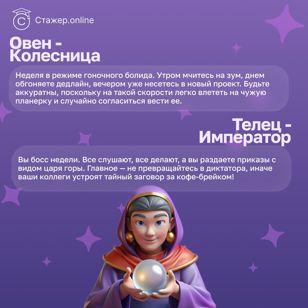 ✨ Ловите таро-предсказания по знакам зодиака на следующую неделю! ✨ Кто вы на этой неделе — Император, Влюбленные или Луна? Посмотрите свой знак и узнайте, что звезды готовят именно для вас! @StazherOnline