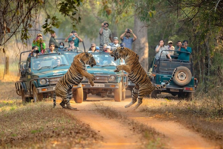 Тигры выясняют отношения на глазах у посетителей индийского нацпарка Тадоба Андхари, 📷 Narayan Malu
