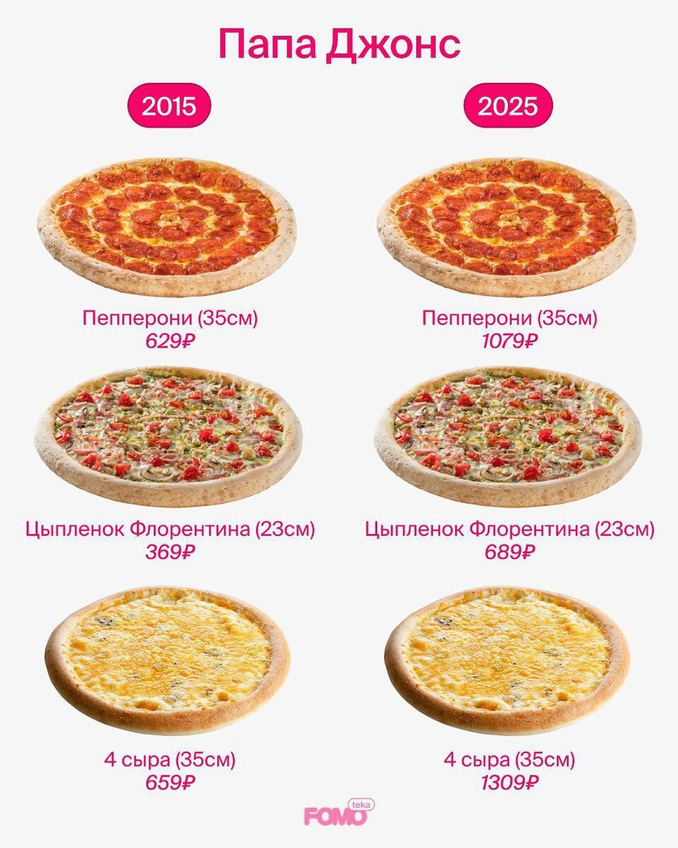 В продолжение темы цен, вот сравнение стоимости блюд и продуктов 2015 года и 2025