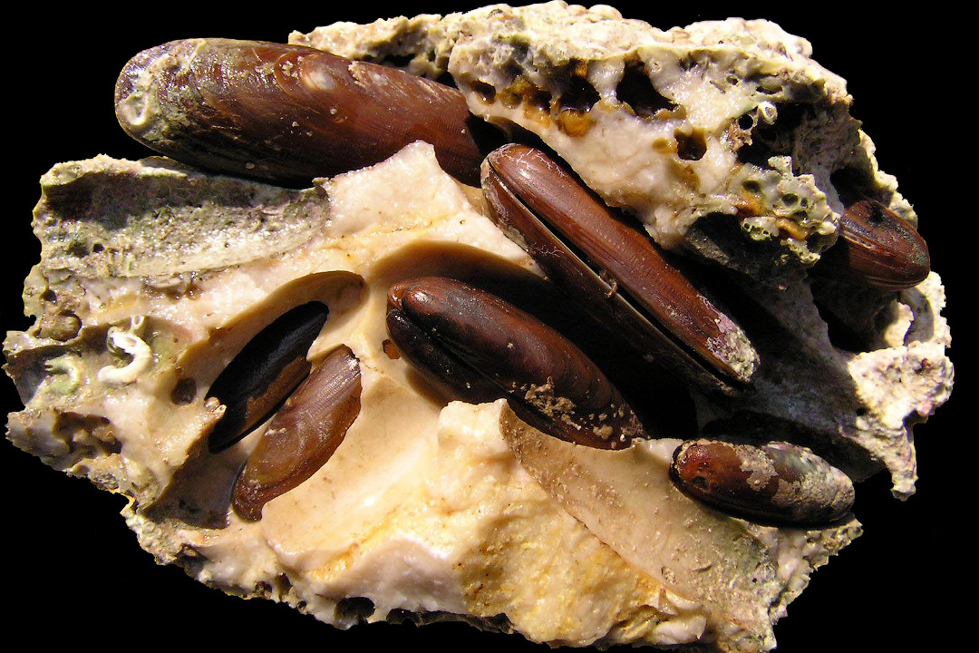 Знакомьтесь: морской финик, камнеточец (Lithophaga lithophaga). Название «морской финик» он получил за продолговатую форму и тёплый бурый оттенок, а «камнеточец» — за умение сверлить себе убежище в твёрдой породе.
