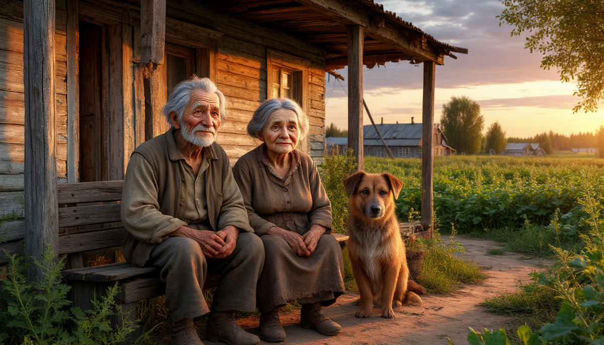 На лавочке возле покосившегося дома, с которого облупилась краска, сидела баба Нюра. Лицо ее, изрезанное морщинами, словно карта прожитой жизни, выражало усталость и какую-то тихую, внутреннюю боль. Рядом с ней, лениво помахивая хвостом, лежала Муха. Дворняга, подобранная Нюрой лет пять назад на обочине дороги. Кто-то выкинул, как ненужную вещь.