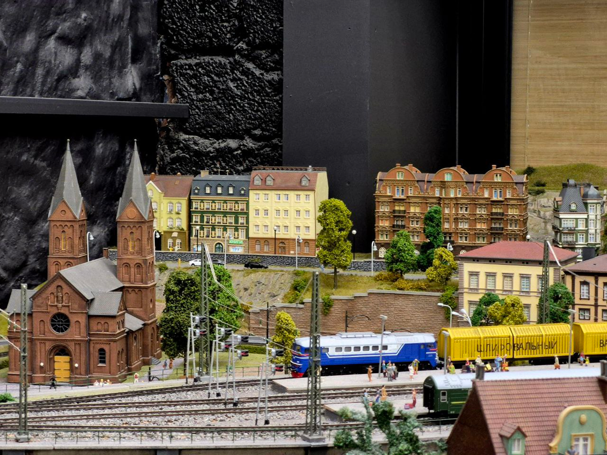 Интерактива в принципе хватает. С определенными интервалами на макете день сменяется ночью (как и положено, утро первым встречает Дальний Восток), и с ночной подсветкой в темное, хм, время суток рассматривать макет тоже красиво. Также там есть кнопки, с помощью которых можно запустить действие каких-то механизмов — например, заставить летать воздушные шары или подниматься лифты в небоскребах, — но воспользоваться кнопками в условиях толпы как минимум сложновато (всегда находятся целеустремленные дети, которые делают это за тебя, причем несколько раз подряд).